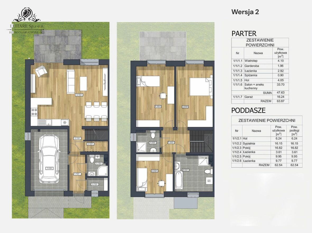 - strefę tj. dzienną na parterze o pow. 47,63m2 + garaż o pow. 16,24m2